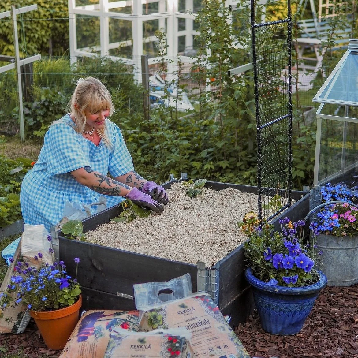 Kekkilän kanssa tuotettiin kesän mittaan kaksi yhteistyökokonaisuutta siirtolapuutarhan pihatöihin liittyen.